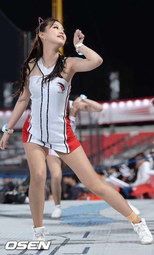 21일 수원시 수원 kt 위즈파크에서 열린 '2015 타이어뱅크 KBO 리그' kt위즈와 SK 와이번스의 경기,kt 치어리더가 멋진 무대를 펼치고 있다.