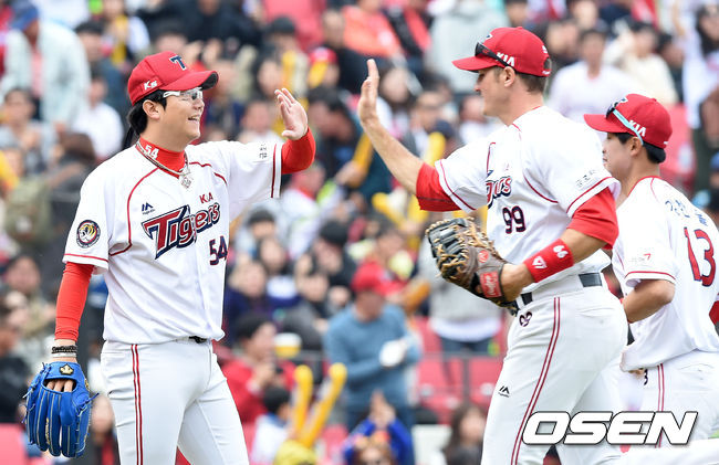 KIA 선발 양현종은 7이닝 3피안타 5볼넷 6탈삼진 1실점 역투로 시즌 3승째를 수확했다. 마무리 윤석민은 2이닝 2피안타 1볼넷 2탈삼진 무실점으로 시즌 4세이브째를 따냈다. 타선에선 필이 4타수 2안타 1타점, 이범호가 3타수 2안타, 김다원이 3타수 1안타 1타점을 기록했다. 롯데 선발 레일리는 6⅔이닝 7피안타 1볼넷 6탈삼진 3실점으로 시즌 첫 패를 기록했다.