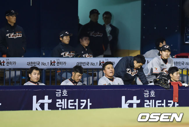21일 오후 서울 잠실야구장에서 열린 '2015 타이어뱅크 KBO 리그' LG 트윈스와 한화 이글스의 경기, 9회초 2사 한화 덕아웃의 표정이 어둡다.
