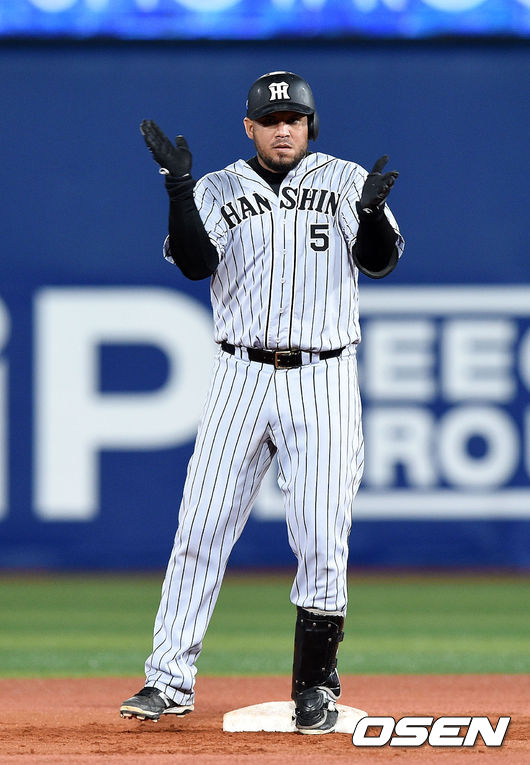 9회초 2사 1,2루에서 한신 고메스가 2타점 적시타를 치고 환호하고 있다./sunday@osen.co.kr