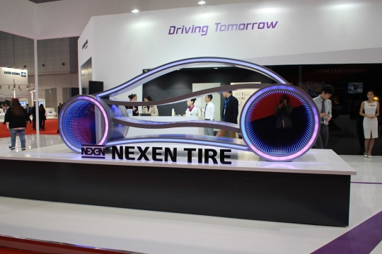 한국타이어는 모터쇼가 열린 상하이국제센터 7관 2층에 자리를 잡았다. 한국타이어는 ‘혁신을 통한 미래 가치 창출’이라는 주제로, 미래형 타이어를 공개했다.
