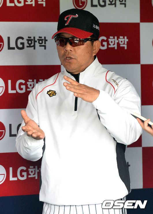 22일 오후 서울 잠실구장에서 열리는 '2015 타이어뱅크 KBO 리그' LG 트윈스와 한화 이글스의 경기 시작전 양상문 감독이 취재진들과 이야기를 나누고 있다.