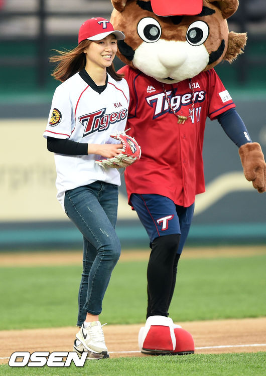 22일 오후 광주-기아 챔피언스필드서 열린 '2015 타이어뱅크 KBO리그' KIA 타이거즈와 롯데 자이언츠의 경기에 앞서 세팍타크로 국가대표팀 심수연이 시구를 위해 입장하고 있다.