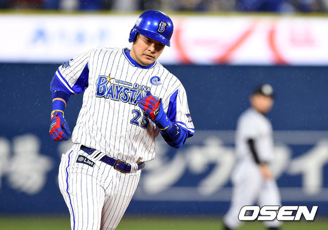 1회말 2사 3루에서 요코하마 쓰쓰고가 우월 투런 홈런을 치고 그라운드를 달리고 있다.