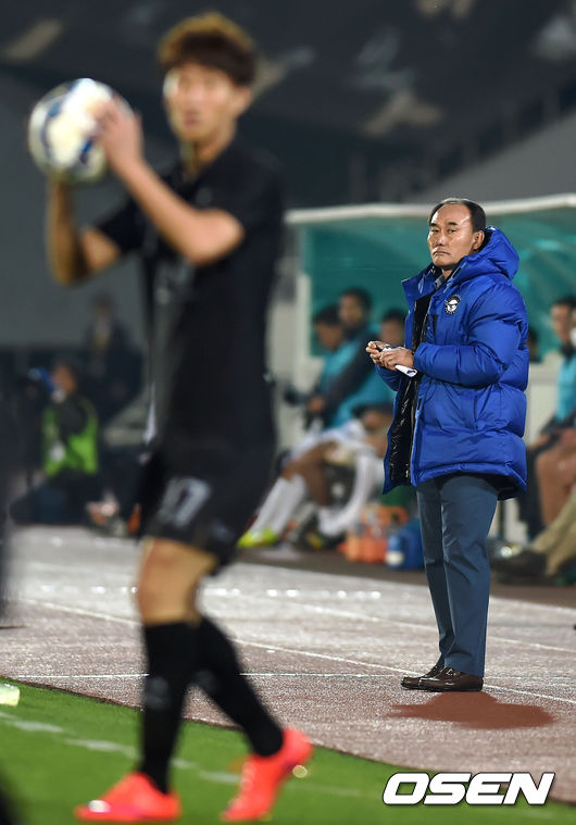 성남 김학범 감독이 경기를 지켜보고 있다.