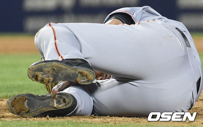 22일 오후 서울 잠실구장에서 열린 '2015 타이어뱅크 KBO 리그' LG 트윈스와 한화 이글스의 경기 4회말 선두타자 이병규의 타구를 맞은 유창식이 넘어져있다.