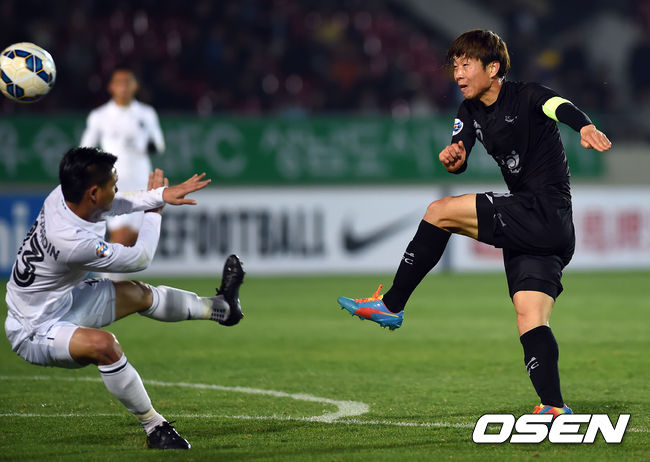 전반 성남 김두현이 슈팅을 시도고 있다. 부리람 수비의 핸드볼 반칙으로 페널티킥을 얻어냈다.