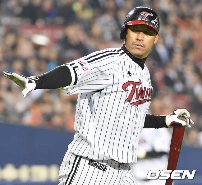 22일 오후 서울 잠실구장에서 열린 '2015 타이어뱅크 KBO 리그' LG 트윈스와 한화 이글스의 경기 4회말 1사 만루 이병규가 밀어내기 볼넷으로 출루하고 있다.