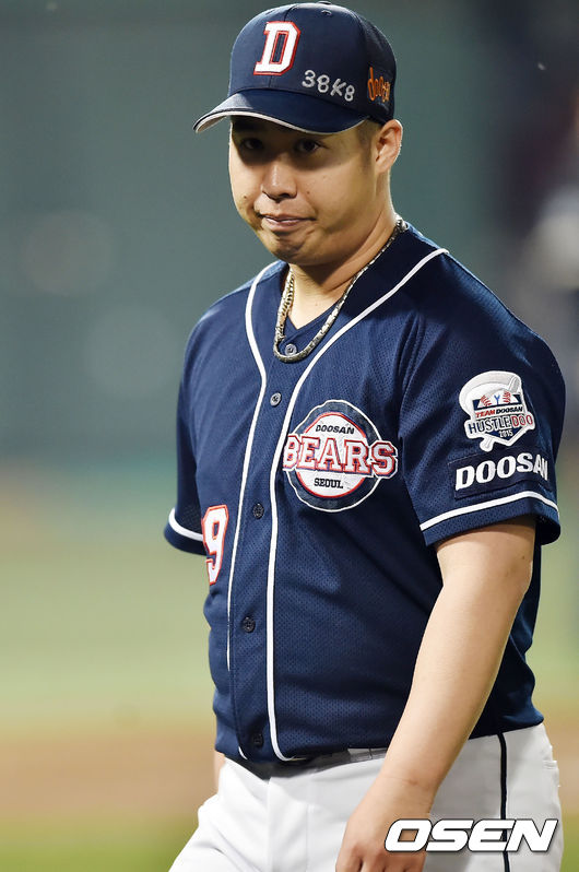 22일 오후 서울 목동야구장서 열린 '2015 타이어뱅크 KBO 리그' 넥센 히어로즈와 두산 베어스의 경기, 6회말을 마친 두산 선발 유희관이 덕아웃으로 향하고 있다.