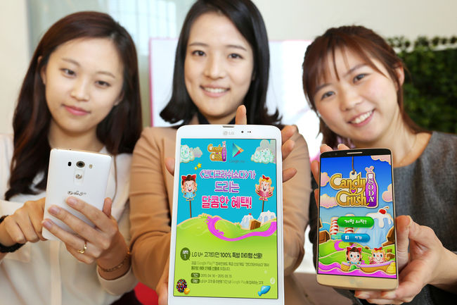LG유플러스(부회장 이상철, www.uplus.co.kr)가 안드로이드 기반 스마트폰을 사용하는 자사 회원 모두에게 구글플레이에 접속만 해도 '캔디크러쉬소다'의 아이템을 증정하는 행사를 진행한다고 23일 밝혔다.
