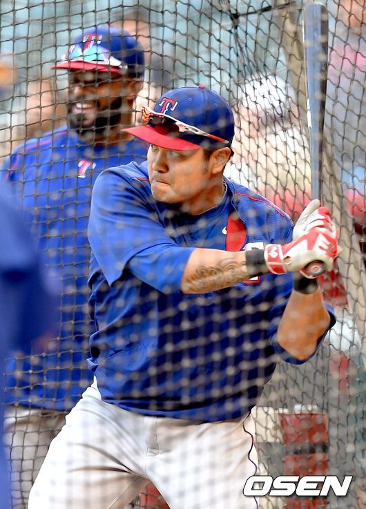 23일(한국시간) 미국 애리조나 주 피닉스 체이스 필드에서 열리는 '2015 메이저리그' 애리조나 다이아몬드백스와 텍사스 레인저스의 경기를 앞두고, 텍사스 추신수가 타격 훈련을 하고 있다.