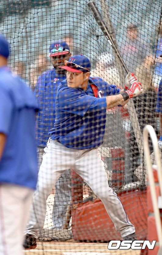 23일(한국시간) 미국 애리조나 주 피닉스 체이스 필드에서 열리는 '2015 메이저리그' 애리조나 다이아몬드백스와 텍사스 레인저스의 경기를 앞두고, 텍사스 추신수가 타격 훈련을 하고 있다.