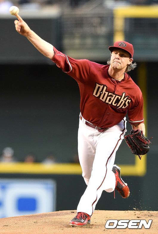 애리조나 선발 아치 브래들리가 힘차게 공을 뿌리고 있다.