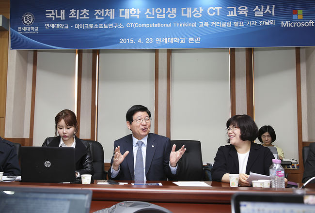 연세대학교와 마이크로소프트연구소(MSR)는 23일 기자간담회를 가지고 컴퓨팅적 사고력(Computational Thinking, CT) 교육과정 개발 및 학제 교육에 관한 현황과 향후 계획을 밝혔다.
