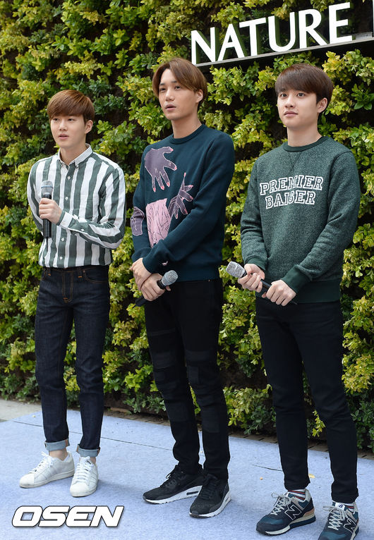 23일 오후 서울 중구 명동 네이처리퍼블릭 명동월드점에서 열린 리뉴얼 오픈 행사에서 EXO(엑소)의 수호 카이 디오가 참석해 인사를 하며 팬들을 바라보고 있다.