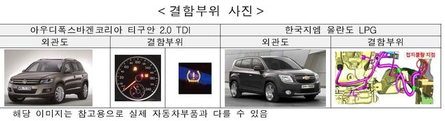 폭스바겐의 '티구안'과 한국지엠의 '올란도'가 각각 경고등 오류와 시동꺼짐 가능성으로 리콜에 들어간다.