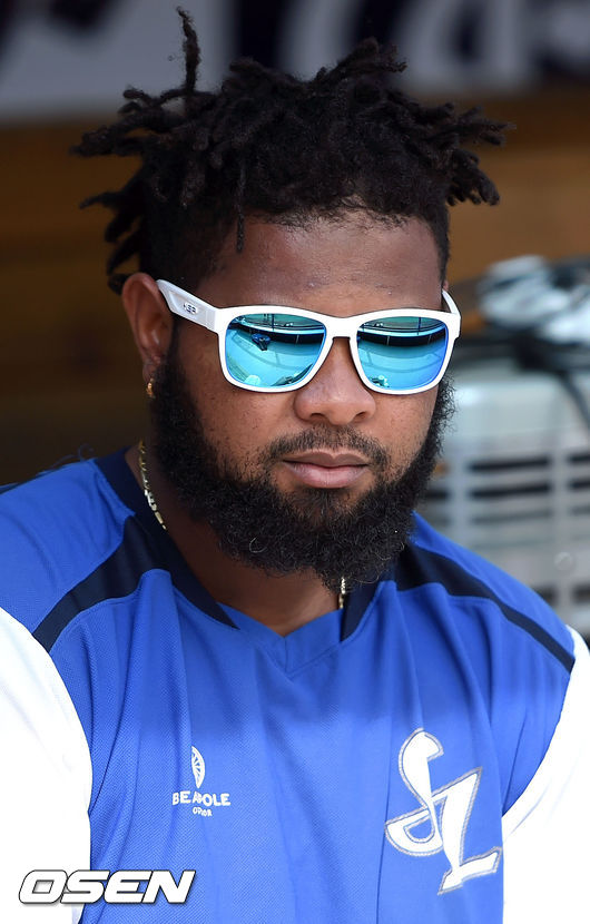 23일 오후 창원시 마산구장에서 열리는'2015 타이어뱅크 KBO리그' NC 다이노스와 삼성 라이온즈의 경기에 앞서 삼성 나바로가 그라운드를 바라보고 있다.