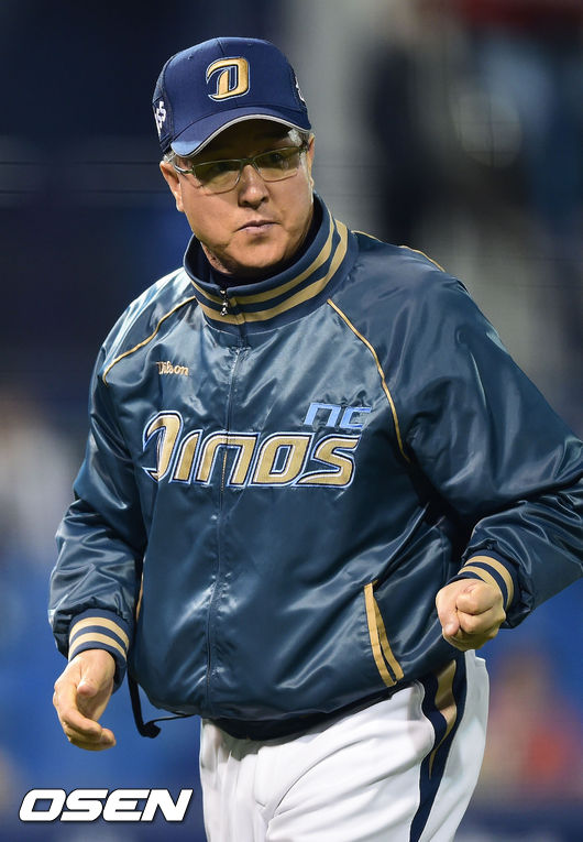 23일 오후 창원시 마산구장에서 열리는'2015 타이어뱅크 KBO리그' NC 다이노스와 삼성 라이온즈의 경기, 5회초 1사 만루 삼성 나바로의 외야플라이성 타구를 NC 손시헌이 놓쳤다. 김경문 감독이 김풍기 3루심에게 항의한 뒤 더그아웃으로 들어가고 있다.