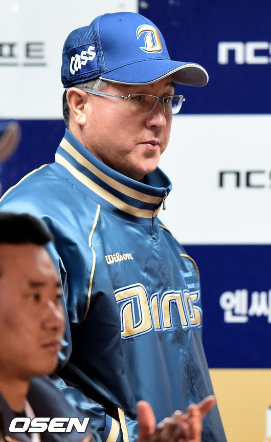 23일 오후 창원시 마산구장에서 열리는'2015 타이어뱅크 KBO리그' NC 다이노스와 삼성 라이온즈의 경기,패색이 짙어진 9회말 NC 김경문 감독이 경기를 지켜보고 있다