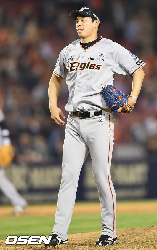 8회말 한화 이동걸이 와일드피치 이후 아쉬워하고 있다./greenfield@osen.co.kr