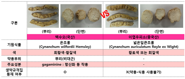 지난 22일 한국소비자원이 서울서부지방검찰청ㆍ경기도특별사법경찰단과 공동으로 시중에 유통 중인 32개 백수오 제품의 원료 진위여부를 조사해 32개 중 실제로 백수오를 원료로 사용한 제품은 3개 제품[9.4%, 백수오가루(한밭식품․자연초), 백수오가루(건우․인차), 백수오가루(감사드림)]에 불과했다고 발표했다.