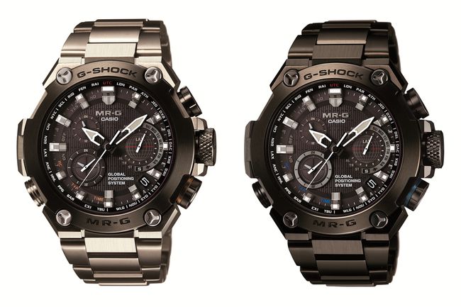 지샥의 하이엔드 라인 MR-G의 신상품인 MRG-G1000시리즈는 풀 메탈 케이스로 내충격구조를 실현해 내구성을 높였으며 GPS하이브리드 전파 솔라 시스템을 탑재했다.