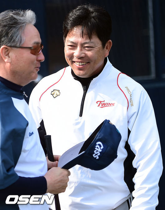 24일 오후 창원시 마산구장에서 열리는'2015 타이어뱅크 KBO리그' NC 다이노스와 LG 트윈스의 경기에 앞서 LG 양상문 감독이 미소 짓고 있다.