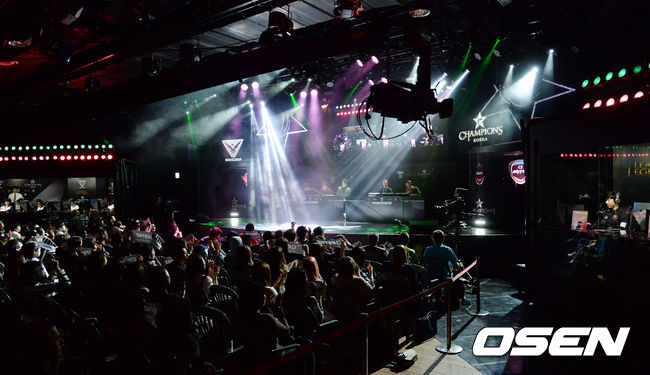 24일 오후 서울 용산 e스포츠 스타디움에서 2015 스베누 리그오브레전드(LOL) 챔피언스 코리아 스프링 포스트시즌(PS)의 플레이오프(PO) (이하 롤챔스 PO)가 열렸다. 이번 롤챔스 PO는 CJ 엔투스와 SK텔레콤 T1의 5전 3선승제의 경기가 펼쳐진다.