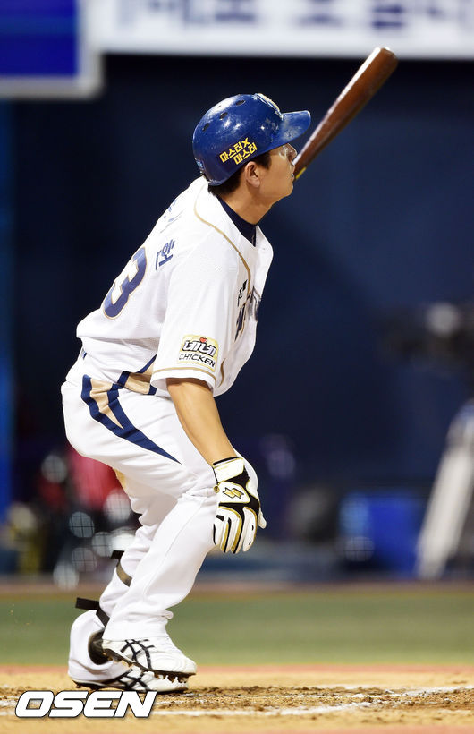 24일 오후 창원시 마산구장에서 열린'2015 타이어뱅크 KBO리그' NC 다이노스와 LG 트윈스의 경기,7회말 2사 1,2루 NC 손시헌이 3점 홈런을 날리고 있다.