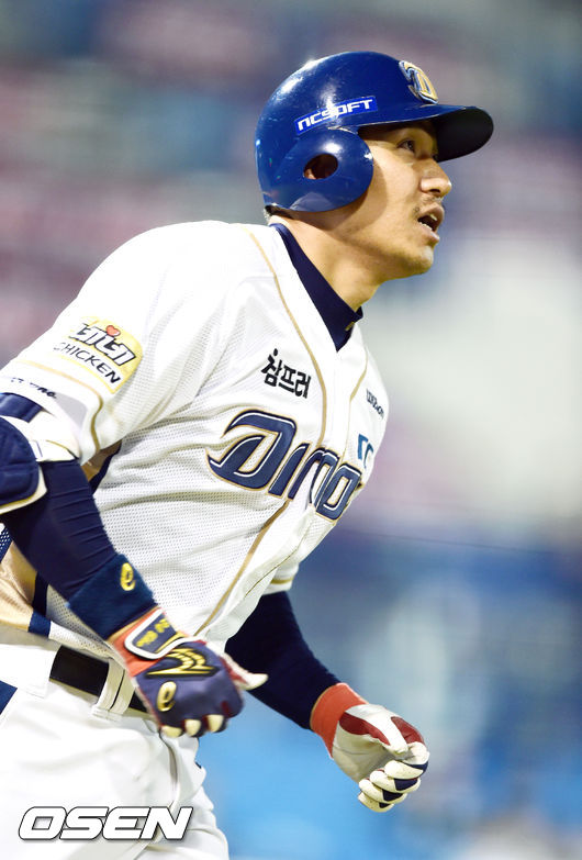 24일 오후 창원시 마산구장에서 열린'2015 타이어뱅크 KBO리그' NC 다이노스와 LG 트윈스의 경기,8회말 NC 조영훈이 솔로홈런을 날린뒤 베이스를 돌고 있다.