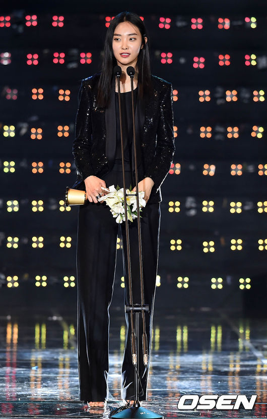 24일 오후 서울 방이동 올림픽홀에서 열린 '2015 아시아 모델 어워즈(Asia Model Awards)'에서 모델 곽지영이 모델스타상을 수상하고 있다.