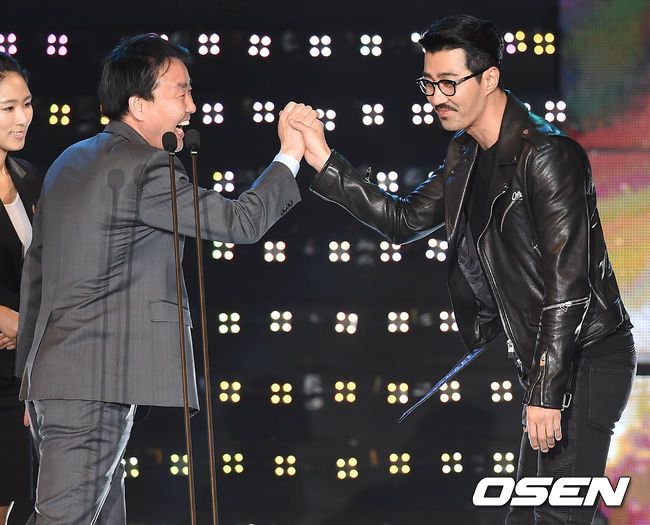 24일 오후 서울 방이동 올림픽홀에서 열린 '2015 아시아 모델 어워즈(Asia Model Awards)'에서 아시아스타상을 수상하는 차승원이 시상자 국회의원 박창식과 인사를 나누고 있다.