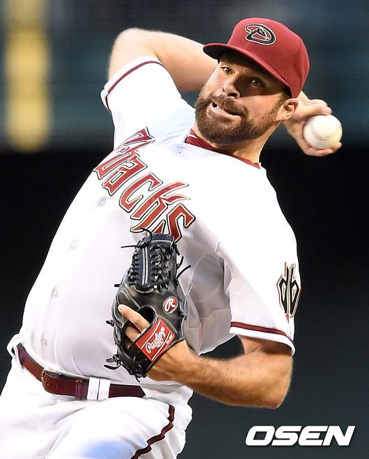 애리조나 선발 조시 콜멘터가 힘차게 공을 뿌리고 있다.