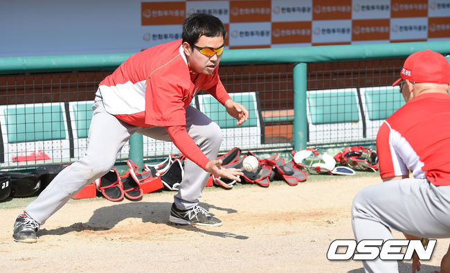 경기전 SK 나주환이 순발력 훈련을 하고 있다.