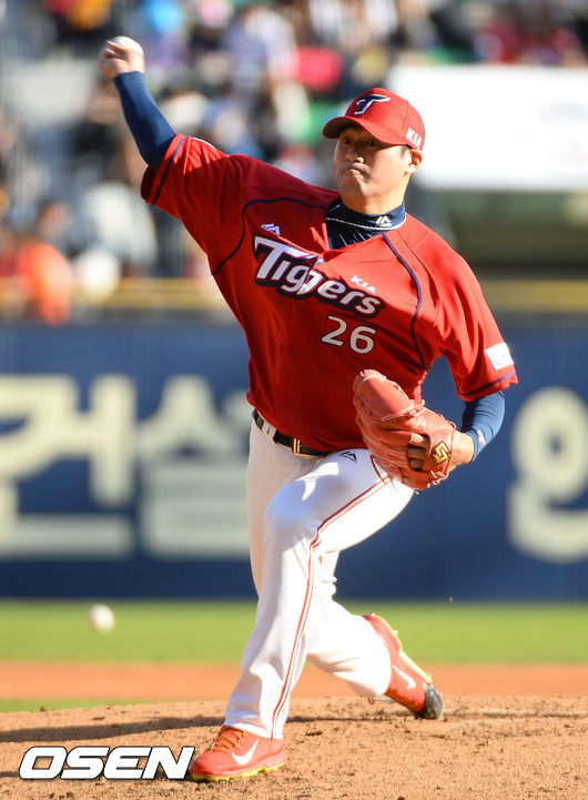 1회말 KIA 선발 서재응이 힘차게 공을 뿌리고 있다.