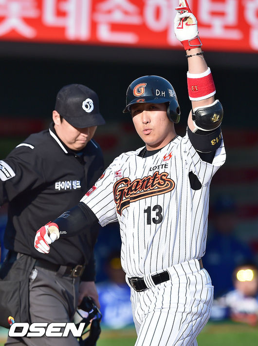 황재균,'선취 투런포 롯데가 먼저 날렸어요'