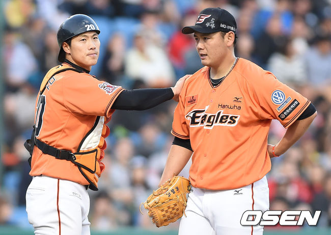 6회초 무사 1루 한화 송창식이 교체되고 있다.