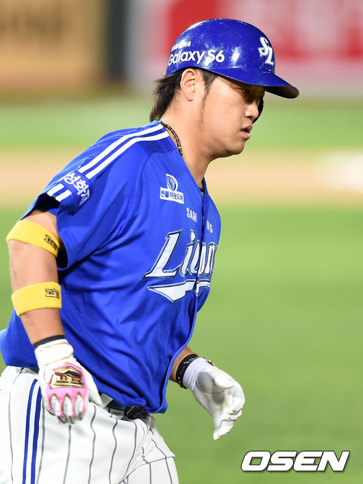 25일 오후 부산 사직구장에서 열린'2015 타이어뱅크 KBO리그' 롯데 자이언츠와 삼성 라이온즈의 경기,7회초 삼성 박석민이 2점 홈런을 날리고 베이스를 돌고 있다