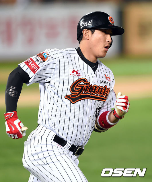 25일 오후 부산 사직구장에서 열린'2015 타이어뱅크 KBO리그' 롯데 자이언츠와 삼성 라이온즈의 경기,8회말 1사 1루 롯데 황재균이 2점 홈런을 날리고 베이스를 돌고 있다.