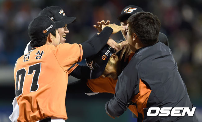 끝내기 승리를 거둔 한화 선수들이 기뻐하고 있다. / youngrae@osen.co.kr