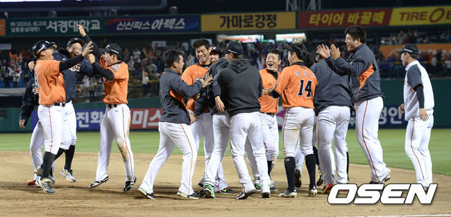 끝내기 승리를 거둔 한화 선수들이 기뻐하고 있다. / youngrae@osen.co.kr