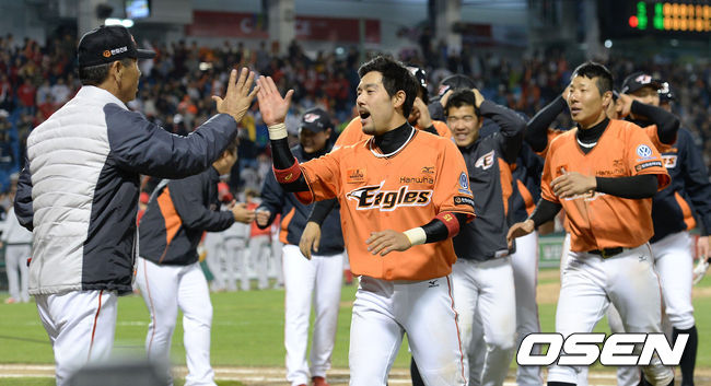 끝내기 승리를 거둔 한화 선수들이 기뻐하고 있다. / youngrae@osen.co.kr