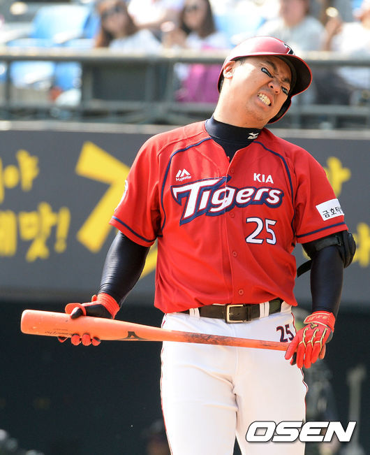 26일 오후 서울 잠실야구장에서 열린 '2015 타이어뱅크 KBO리그' 두산 베어스와 KIA 타이거즈의 경기, 4회초 무사 2루에서 KIA 이범호가 좌익수 플라이로 물러나며 아쉬워하고 있다.