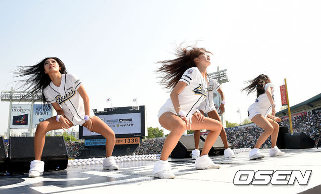 26일 오후 서울 잠실야구장에서 열린 '2015 타이어뱅크 KBO리그' 두산 베어스와 KIA 타이거즈의 경기, 두산 치어리더들이 멋진 공연을 하고 있다.