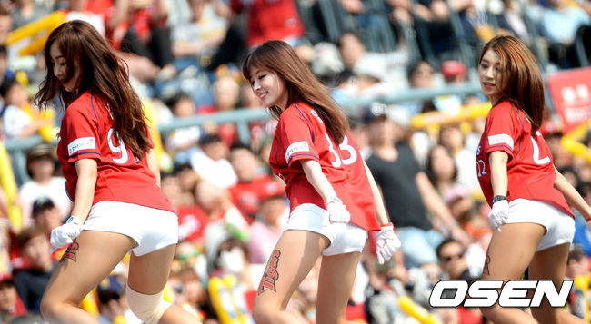 26일 오후 서울 잠실야구장에서 열린 '2015 타이어뱅크 KBO리그' 두산 베어스와 KIA 타이거즈의 경기, KIA 치어리더들이 멋진 공연을 하고 있다.