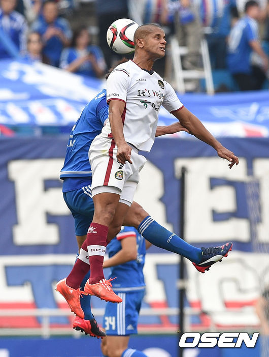 전반 대전 사싸가 헤딩을 하고 있다.