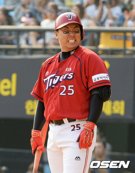 26일 오후 서울 잠실야구장에서 열린 '2015 타이어뱅크 KBO리그' 두산 베어스와 KIA 타이거즈의 경기, 9회초 무사에서 KIA 이범호가 홈런성 타구가 파울로 선언되자 아쉬워하고 있다.