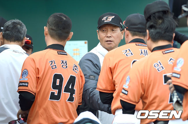 승리를 거둔 김성근 감독이 코치들과 악수를 나누고 있다. / youngrae@osen.co.kr