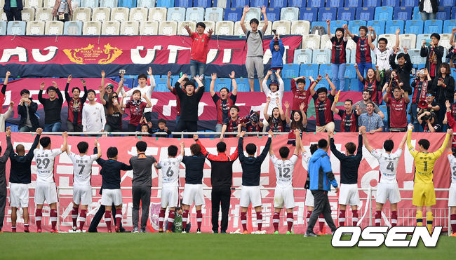 경기 종료 후 대전 선수들이 팬들과 함께 승리의 기쁨을 나누고 있다./sunday@osen.co.kr