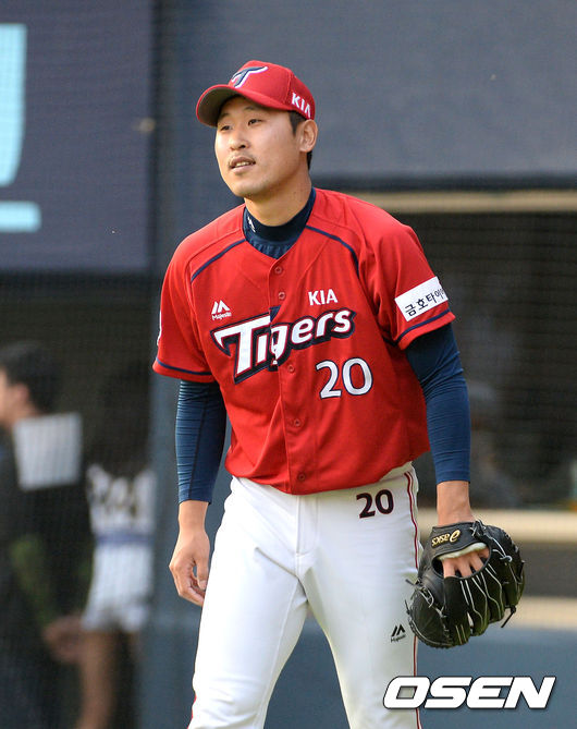 연장 12회말 1사 2,3루에서 두산 유민상이 끝내기 희생플라이를 날리자 KIA 윤석민이 아쉬워하고 있다. /jpnews@osen.co.kr